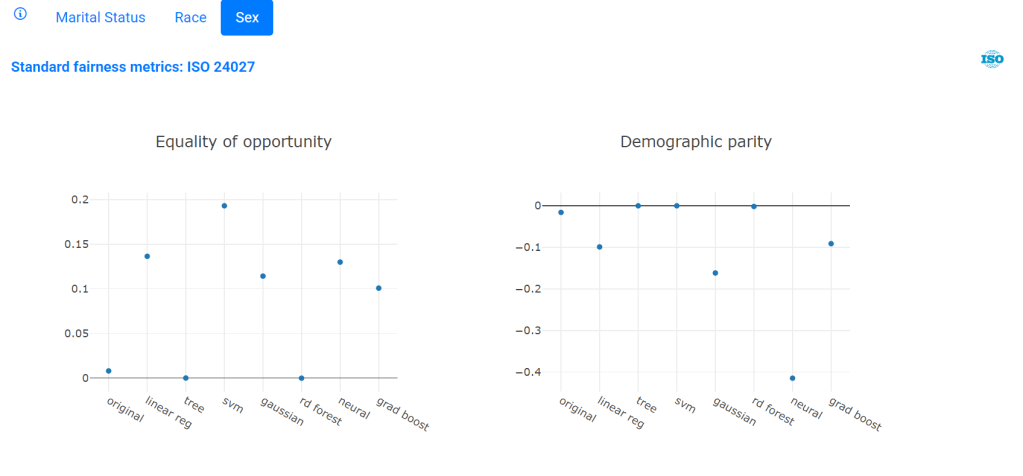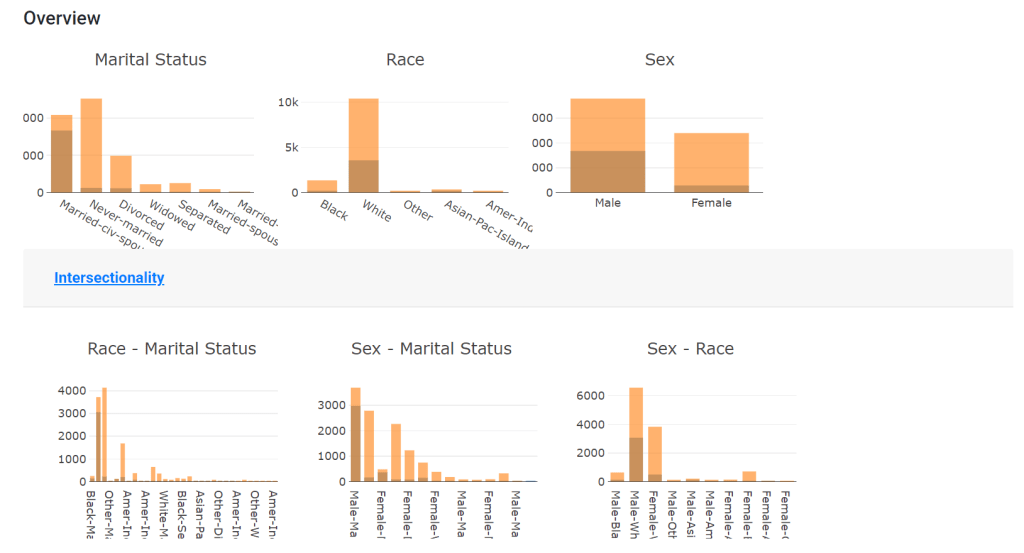 We initialize the class responsible for running FixOut (FixOutRunner ☍) and assign it a name (which will be the title displayed on the web interface). We also indicate the sensitive features. In this case, they are “Marital status”, “race”, and “sex”.